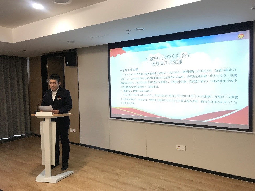 2018年11月20日,共青團寧波中百股份有限公司總支委員會召開全體團員大會,進行換屆選舉。會議在莊嚴(yán)肅穆的國歌聲中正式開始,團總支書記陳佳琦代表上屆團總支作工作報告。
