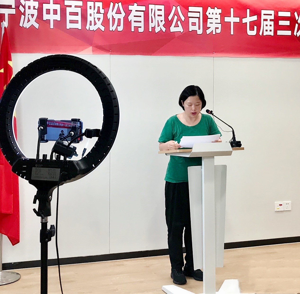 寧波中百股份有限公司第十七屆三次職工(會(huì)員)代表大會(huì)于2020年7月28日在公司大會(huì)議室舉行,由于新冠肺炎疫情防控需要,本次會(huì)議采取線上線下結(jié)合形式召開。